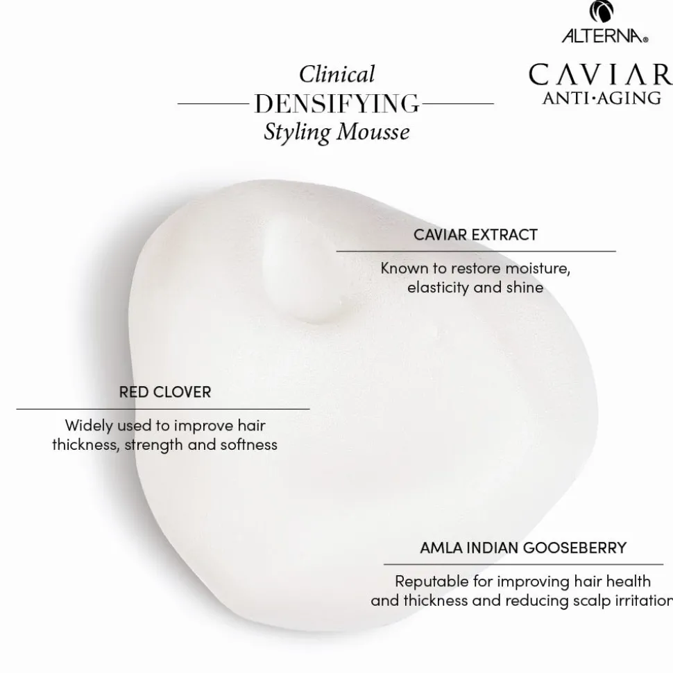 Das ALTERNA Caviar Clinical Densifying Styling Mousse ist ein leichtes Mousse, dass das Haar verdichtet, stärkt und gleichzeitig Haarbruch vorbeugt.