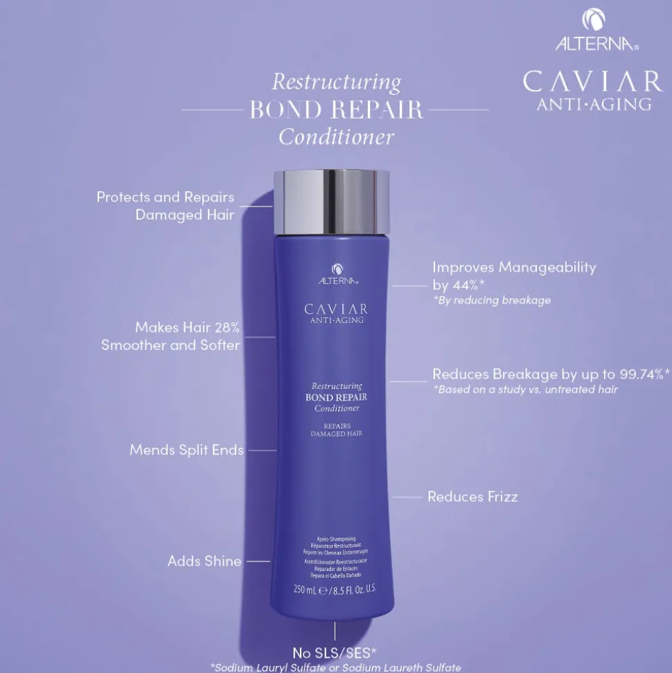 Der Alterna Caviar Restructuring Bond Repair Conditioner hat eine reparierende Wirkung, die das Haar pflegt, kräftig und stärkt.