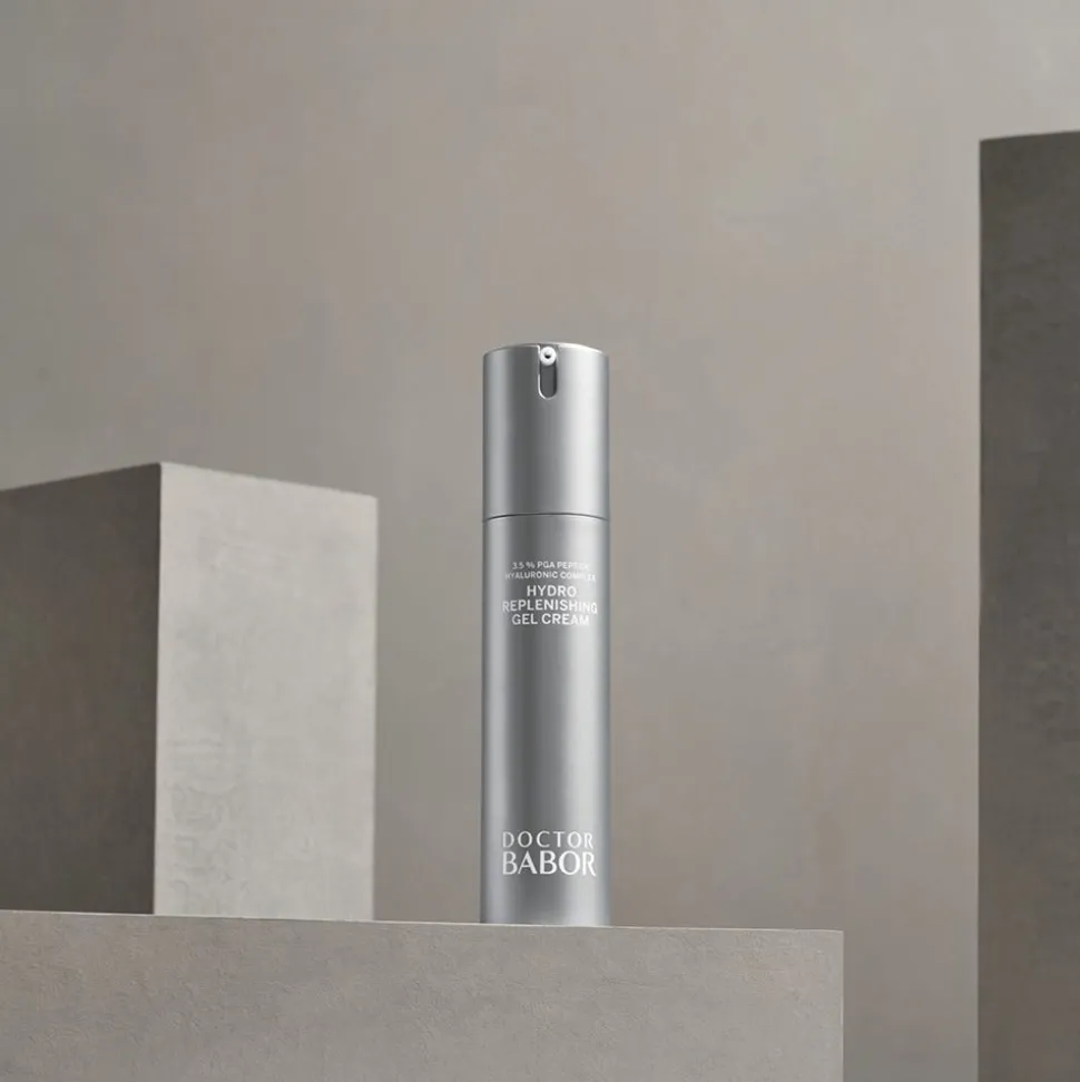 Die BABOR Hydro Replenishing Gel Cream hat einen wirkungsvollen Komplex aus multi-molekularen Hyaluronsäuren, Peptiden und natürlichen Zuckern zur Steigerung der Hautfeuchtigkeit sowie zur Unterstützung der hauteigenen Hyaluron-Synthese und des NMFs. Die Feuchtigkeitsverteilung wird optimiert und der transepidermale Wasserverlust vermindert. Ergebnis: Durchfeuchtetes und glatteres Hautbild.