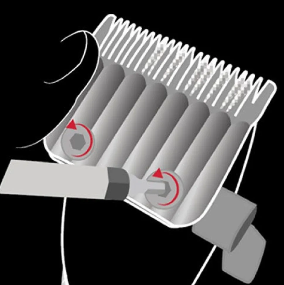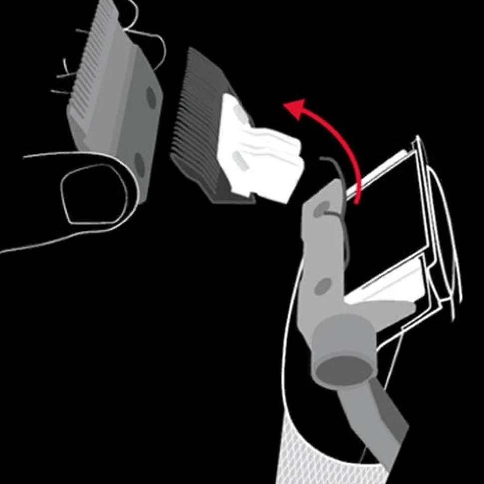 Um den Klinge auszuwechseln, den Haarschneider zunächst ausschalten und den Feinstellhebel (links) in die oberste Einstellung platzieren. Dann die Schrauben mithilfe eines Schraubenziehers lösen und verstauen. Die bewegliche Klinge etwas anheben und mit der neuen beweglichen Klinge auf dem Oszillator austauschen. Als nächstes die fixierte Klinge austauschen und darauf achten, dass die bewegliche Klinge zentriert und parallel zur fixierten Klinge eingestellt wird, um mögliche Verletzungen zu verweiden. Als letztes die Schrauben anziehen. Vor und während des Gebrauchs wird die regelmäßige Reinigung und Pflege empfohlen, um eine saubere Performance und eine erhöhte Lebensdauer sicherzustellen. Hierzu eignet sich zum Beispiel das 4in1 Spray von BaBylissPRO, das die Klinge gleichzeitig ölt, kühlt und reinigt, um Reibung, Abnutzung und Wärmeentwicklung zu minimieren.