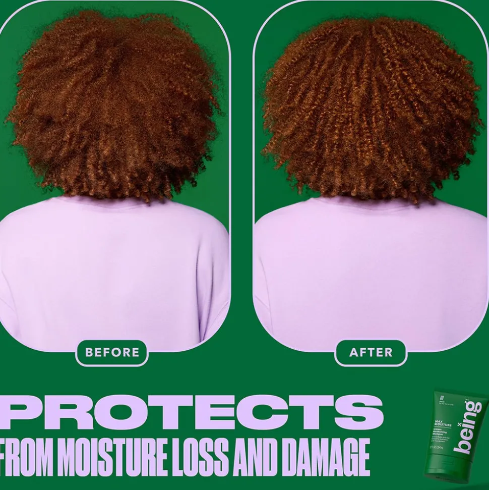 Der being MAX MOISTURE Intensive Conditioner ist die ideale Pflege für trockenes, sprödes und krauses Haar (Haartyp 4A–4C oder trockene Strukturen). Die dermatologisch getestete, sulfat- und silikonfreie Formel mit Kakaobutter und Haferextrakt spendet intensive Feuchtigkeit, beruhigt die Kopfhaut und stärkt die Haarstruktur. Das Haar wird tiefenwirksam gepflegt, geschmeidig und erhält neue Elastizität.