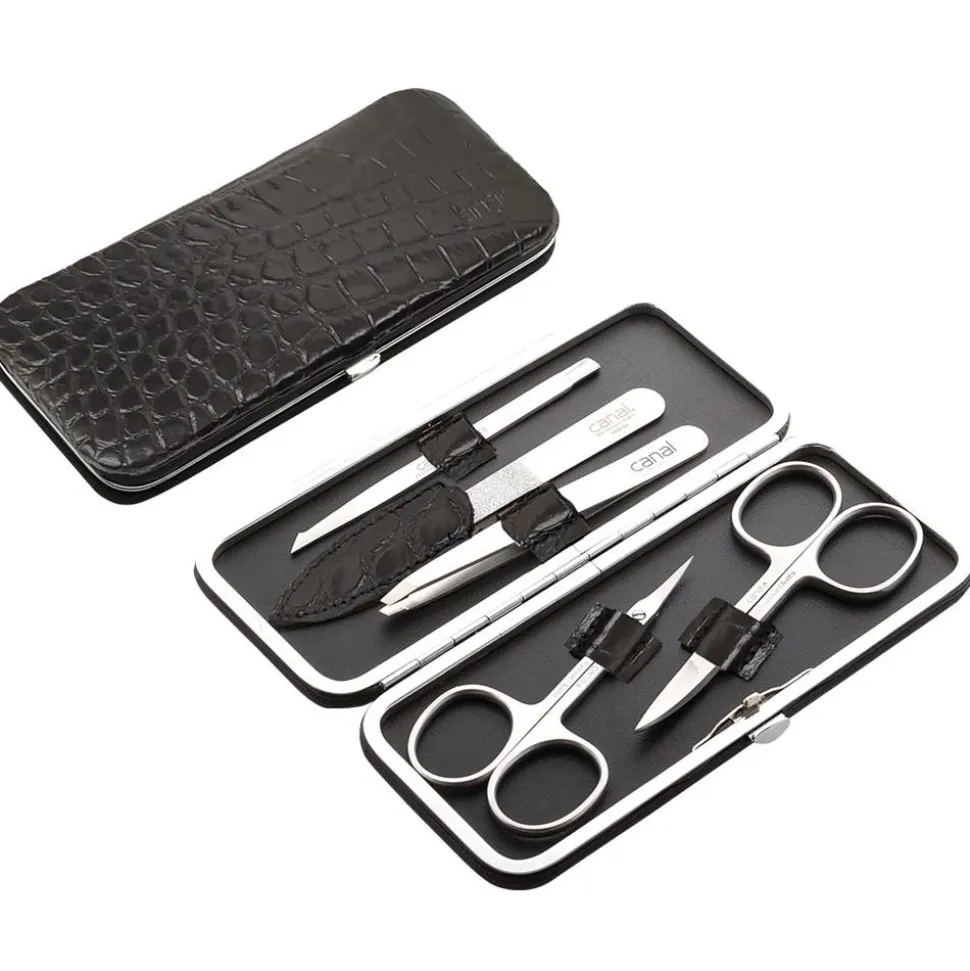 Inhalt des Canal Bügeletui aus Leder 5-teilig Schwarz