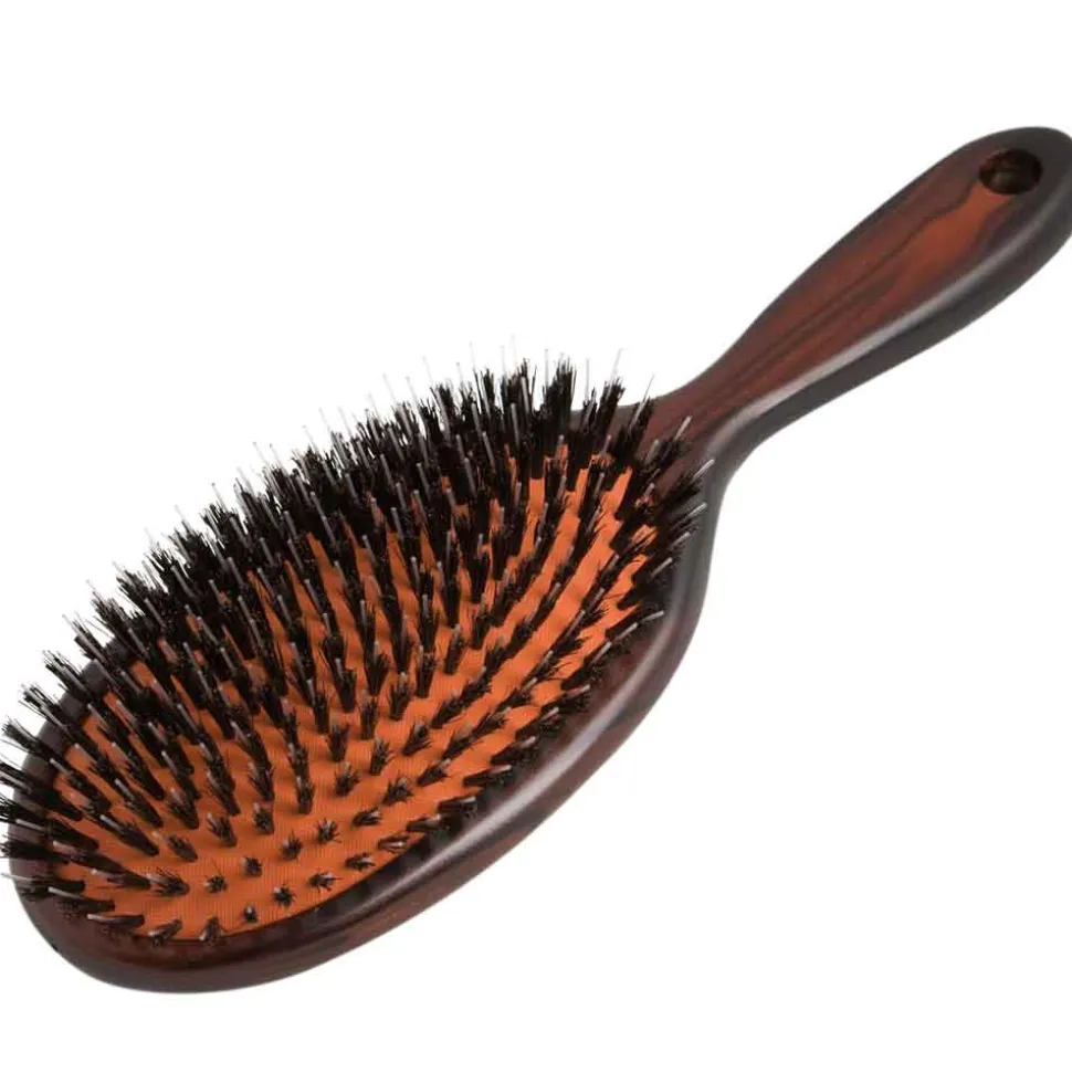 Die Langhhaarpflegebürste ist eine Pneumatikbürste für normales bis dickeres Haar. Naturborste, nylonverstärkt, mit rotem Gummikissen, oval. 23 cm, groß, 13-reihig.
