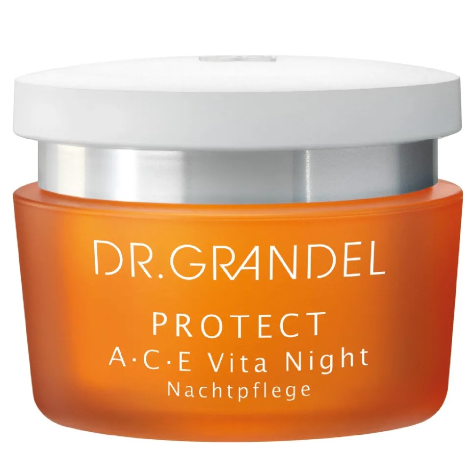 DR. GRANDEL Protect ACE Vita Night ist die optimale Pflege für die Nacht. Die mikrofein verkapselten Vitamine und ein spezieller DNA-Schutz in der Nachtpflege wirken gezielt Umweltbelastungen und vorzeitiger Hautalterung entgegen.