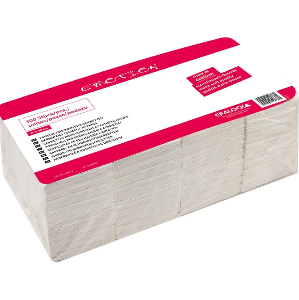 Die Efalock Emotion Servietten sind Friseur- und Kosmetik-Servietten in den Maßen 40 x 40 cm. Es sind 300 Stück enthalten.