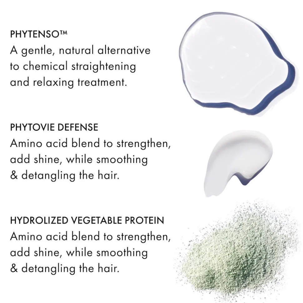 - Phytenso™, ein Biolipid-Komplex, dient als natürliche Alternative zum chemischen Glätten, indem er jede Strähne umhüllt und verlängert. Versiegelt außerdem die angehobene Schuppenschicht und repariert Spliss.