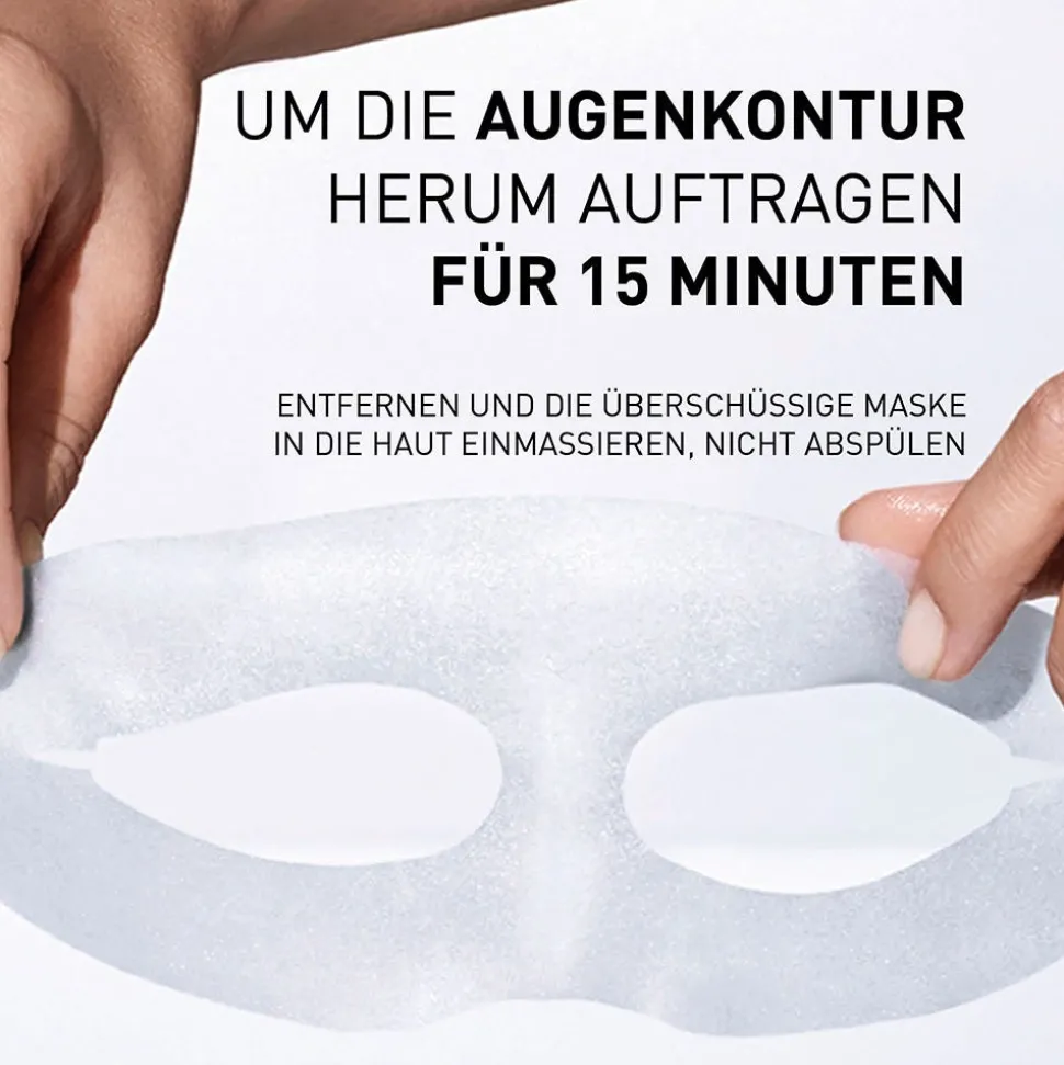 3 Mal pro Woche anwenden. Die Maske um die Augenkontur legen, 15 Minuten einwirken lassen, dann abnehmen und die restliche Essenz einmassieren. Nicht abspülen.