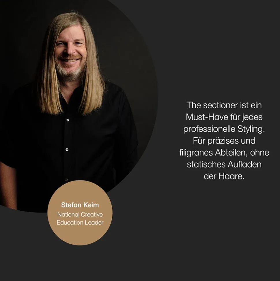 Der ghd the sectioner Stielkamm ist ein Stielkamm mit feinen Zähnen zum Toupieren und Abteilen von allen Haarlängen- und Haartypen. Der Kamm ist aus hochwertigem Carbon gefertigt und überzeugt mit anti-statischen und hitzebeständigen Eigenschaften. Mit dem spitz zulaufenden Stiel lassen sich Haarpartien präzise abteilen, weshalb the sectioner das perfekte Hilfsmittel für Hochsteckfrisuren ist.