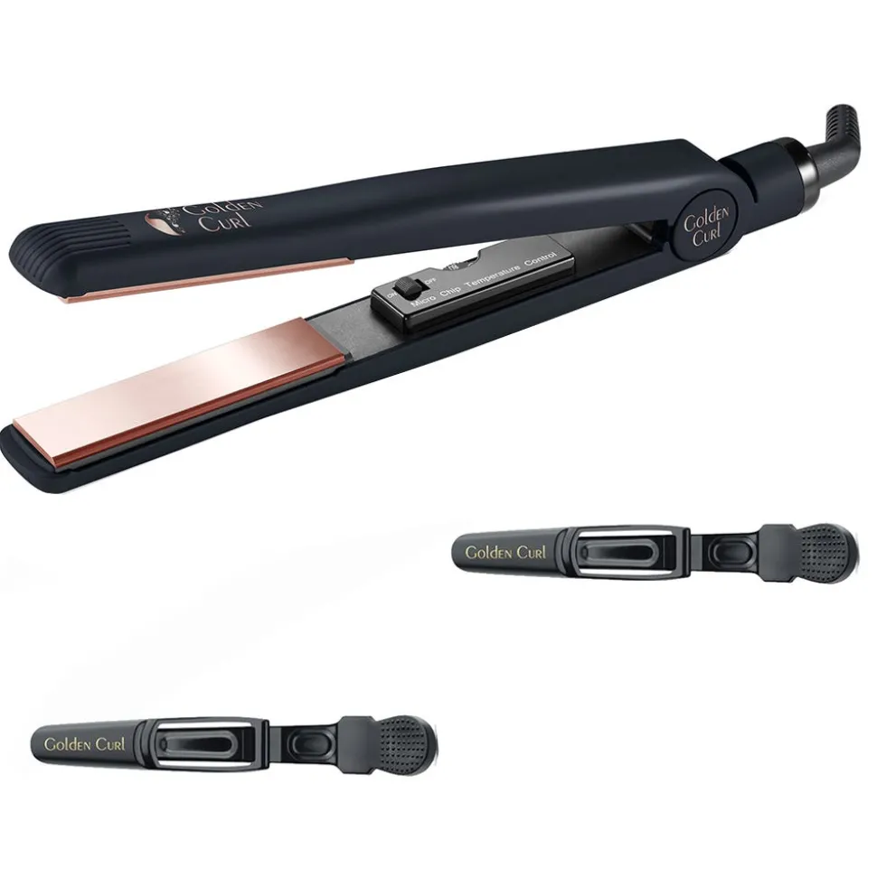 Das Golden Curl Tourmaline/Titanium Glätteisen (Rose Gold) ermöglicht mit 1 Inch Turmalin Keramik beschichteten Platten und Temperatur Regelung 80°- 230°C ein bequemes und haarschonendes Haare glätten und Haare locken. Mit Salon Qualität und zusätzlichem Zubehör für optimale Handhabung & atemberaubende Resultate.