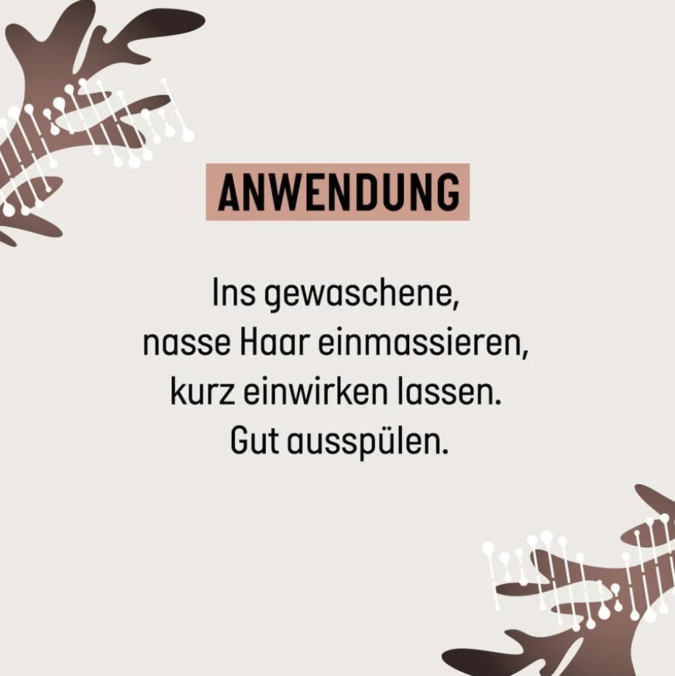 Ins gewaschene, nasse Haar einmassieren, kurz einwirken lassen und anschließend gut ausspülen.