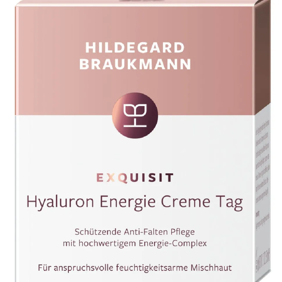 Die Hildgard Braukmann exquisit Hyaluron Energiecreme ist eine leichte Tagespflege mit einem Energie-Complex aus Bio-Hyaluronsäure, Vitaminen und Liposomen. Sie strafft und festigt die Haut und mildert Fältchen. Die Feuchtigkeit wird länger gespeichert. Lycopen – extrahiert aus Tomaten – sorgt als hocheffektiver „Radikalfänger“ für einen wirksamen Zellschutz. Seidenproteine schenken zusätzlich ein angenehmes Hautgefühl.