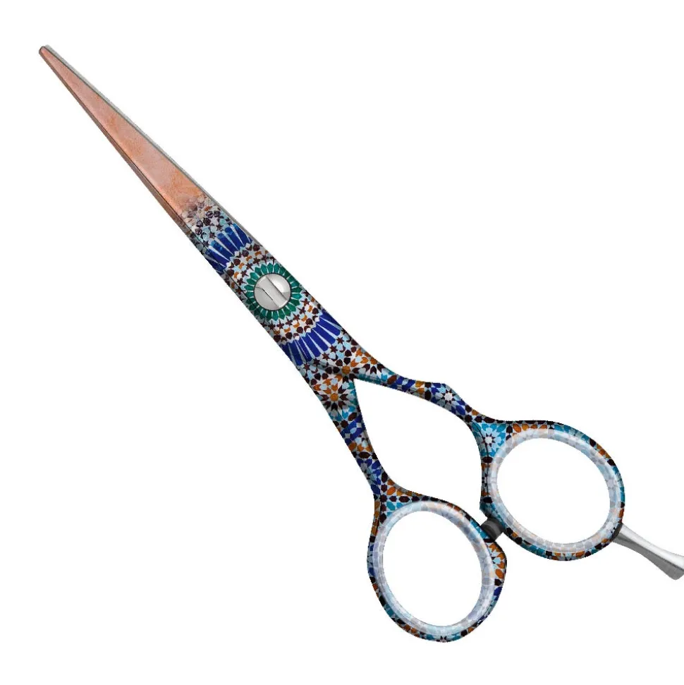 Die orientalischen Muster auf Haarschere und Messer erinnern an die landestypische Keramik und entführen in eine Welt aus 1001 Nacht.