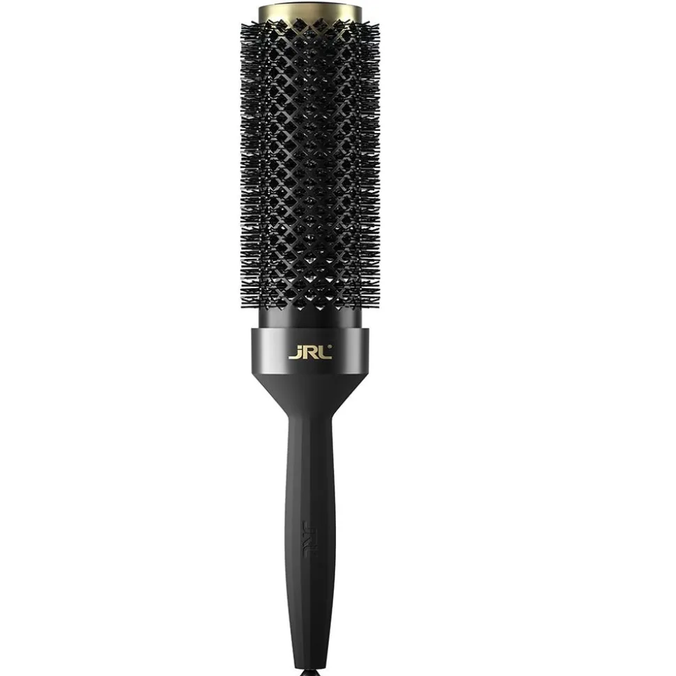 Die JRL Professional Ionic Graphene-Infused Ceramic Föhnbürste ist ausgestattet mit den innovativen Multiplex-Ionenborsten. JRL kombiniert gerade ionische lange Borsten, die dir ein glattes Bürsten ermöglichen, mit wellenförmigen Borsten, die das Haar perfekt greifen und maximale Spannung für mehr Volumen und Form bieten. Durch die Zwischenräume, die zwischen den wellenförmigen Borsten und deinem Haar entstehen, kann die Luft optimal zirkulieren. Das beschleunigt das Trocknen und Stylen deiner Haare. Der IGC-Zylinder (ionisch graphene-infundierte Keramik) leitet die Wärme schnell und gleichmäßig, wenn du einen Haartrockner verwendest. Mit einer revolutionären wärmeaktivierten Funktion wechselt der IGC-Zylinder seine Farbe von Schwarz – das sieht nicht nur stylisch aus, sondern zeigt dir auch visuell die Anwendung der Wärme an. Dank des rutschfesten Gummidesigns liegt die Bürste sicher und komfortabel in deiner Hand. Egal, ob du eine voluminöse Föhnfrisur oder glatte, geschmeidige Strähnen anstrebst – mit dieser Bürste erzielst du professionelle Ergebnisse mit Leichtigkeit.