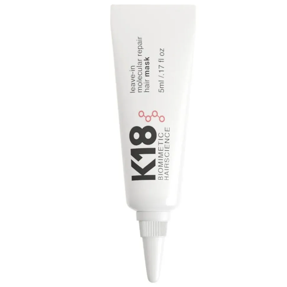 Die K18 Leave-In Molecular Repair Hair Mask dient besonders der Behandlung für zu Hause. Sie heilt und repariert Schäden, die durch thermisches und mechanisches Styling entstehen können. Für beste Ergebnisse, sollte die Maske 4 Mal hintereinander sowie dann bei jeder 4. Haarwäsche für den besten Langzeiteffekt angewendet werden.