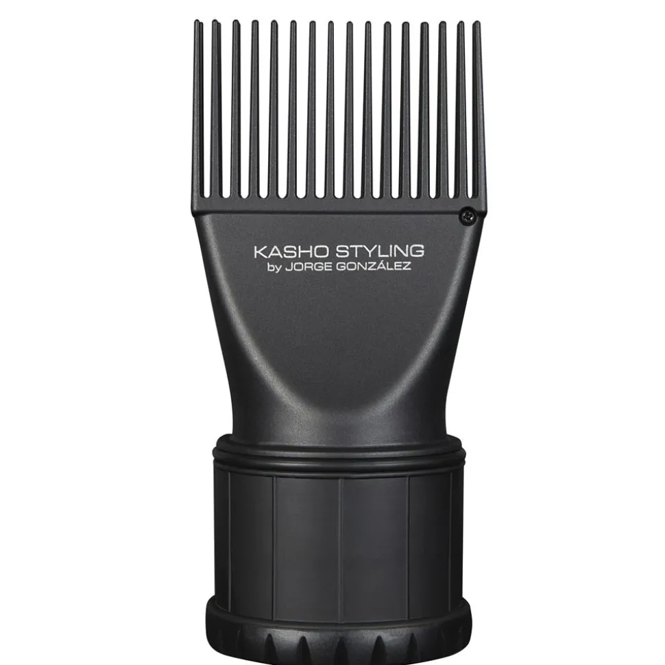 Mit dem Sleeky Glättungsaufsatz lässt sich krauses und lockiges Haar direkt beim Föhnen glätten – für ein besonders einfaches und schnelles Handling und schonendes Glätten. Der gemeinsam mit Jorge González speziell zum Glätten entwickelte Kammaufsatz mit Universaladapter kann für Kasho Föhndüsen mit einem Durchmesser von 44 – 50 mm verwendet werden.