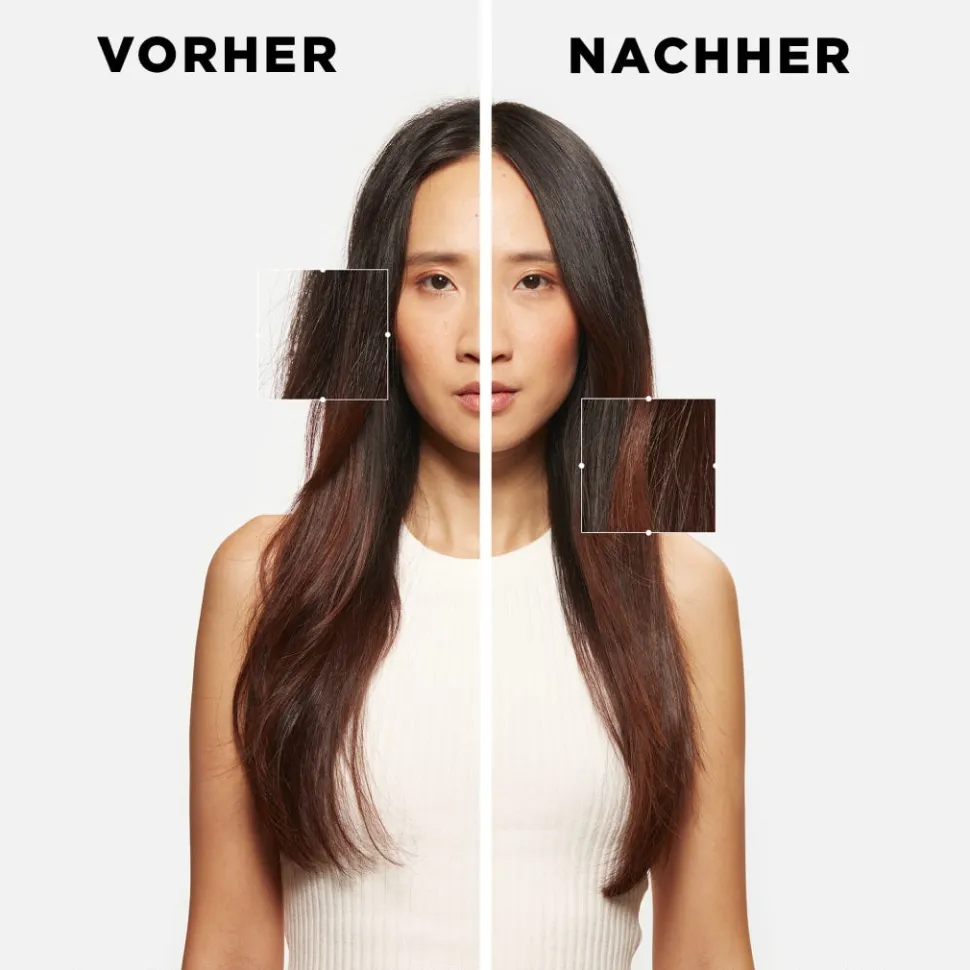 - Verfeinert die Haarstruktur und versiegelt die Haaroberfläche und macht sie elastisch