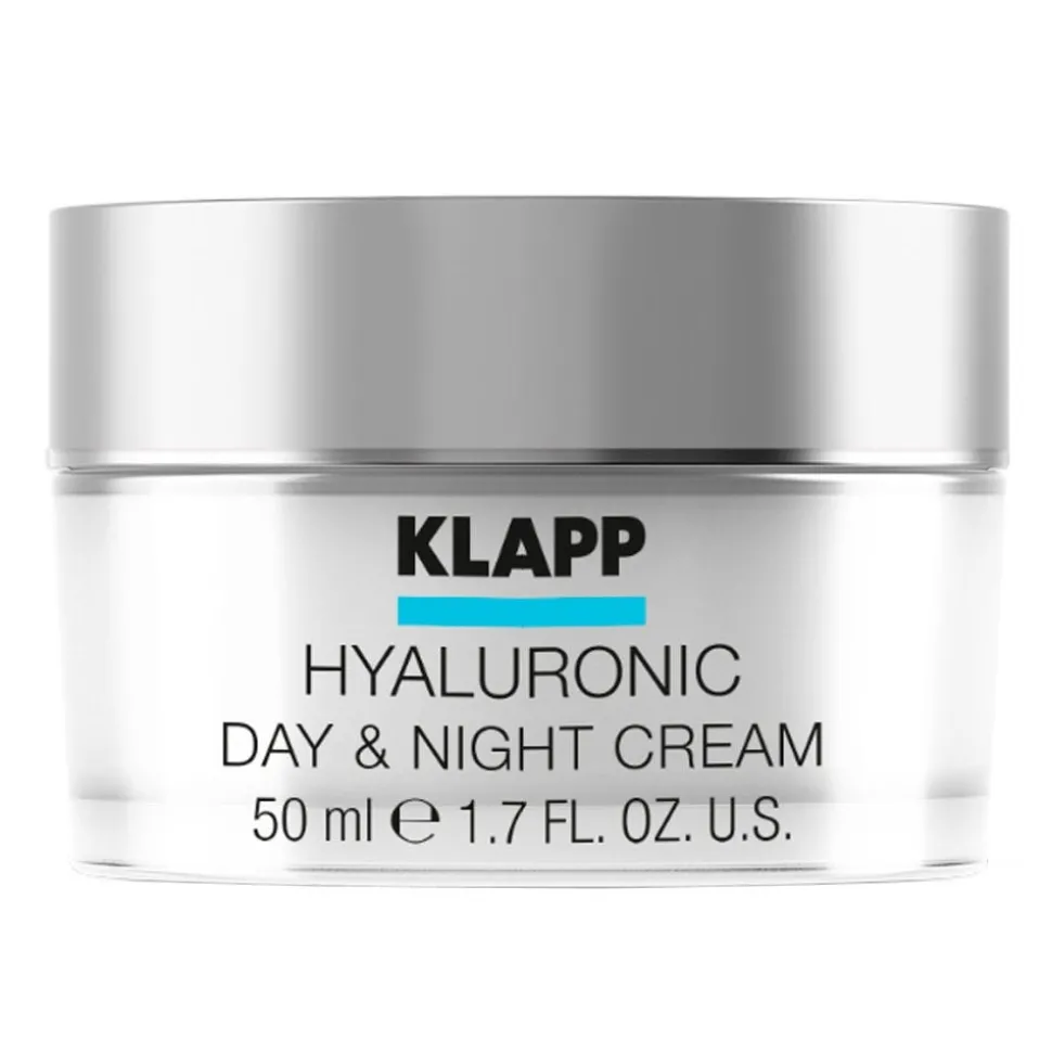 Die Klapp Cosmetics Hyaluronic Day & Night Cream ist eine intensiv hydratisierende Tag- & Nacht-Creme. 3-fach aktive Hyaluronsäurekomplexe wirken in einem intelligenten Mehrstufen-System und geben die Hyaluronsäure zeitversetzt in unterschiedliche Ebenen der oberen Haut ab. Kostbares Traubenkernöl, reich an Antioxidanzien, sowie Jojobaöl und Squalan vollenden diese Wirkstoff-Komposition. Die Haut wirkt optisch glatter, praller und straffer.