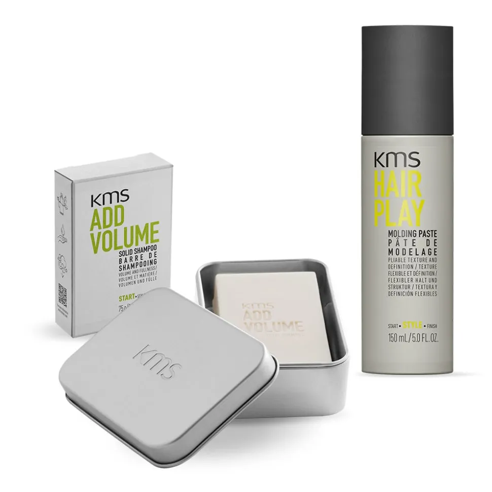 Das KMS Addvolume Men Pflegeset sorgt für Volumen und Fülle und Ihr Haar bekommt durch die Molding Paste Textur und ein natürliches Finish. Das Set enthält eine KMS Addvolume Solid Shampoo Bar 75 g und eine KMS Hairplay Molding Paste 150 ml.