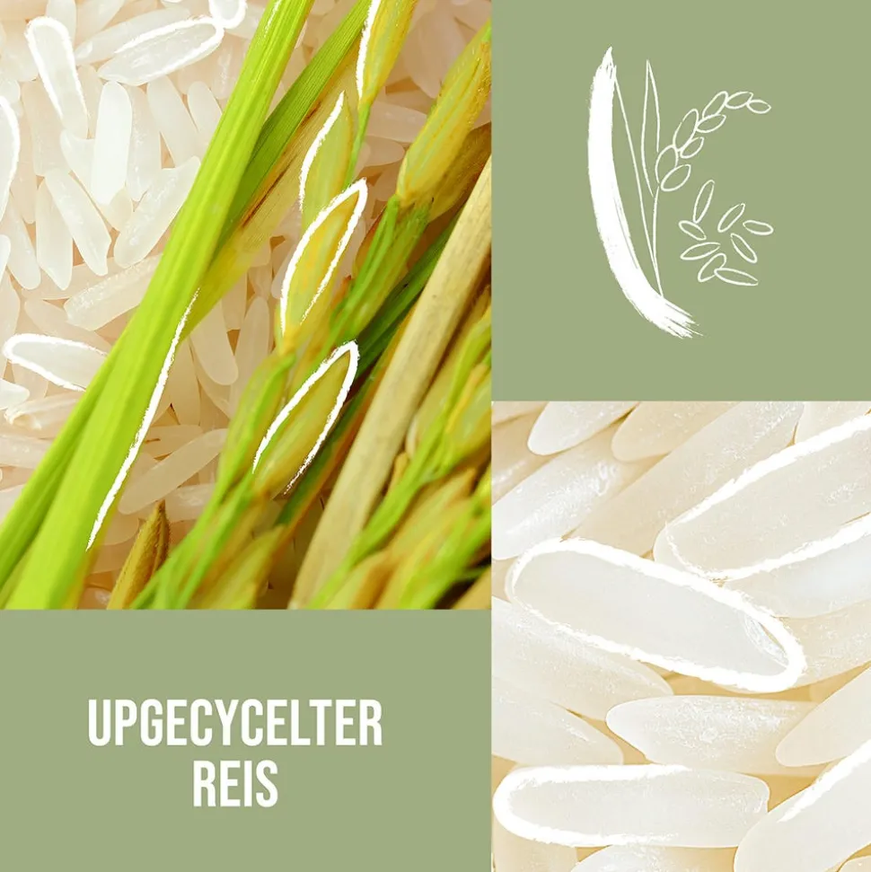 - Pflegt mit upgecyceltem Reis reich an Aminosäuren
