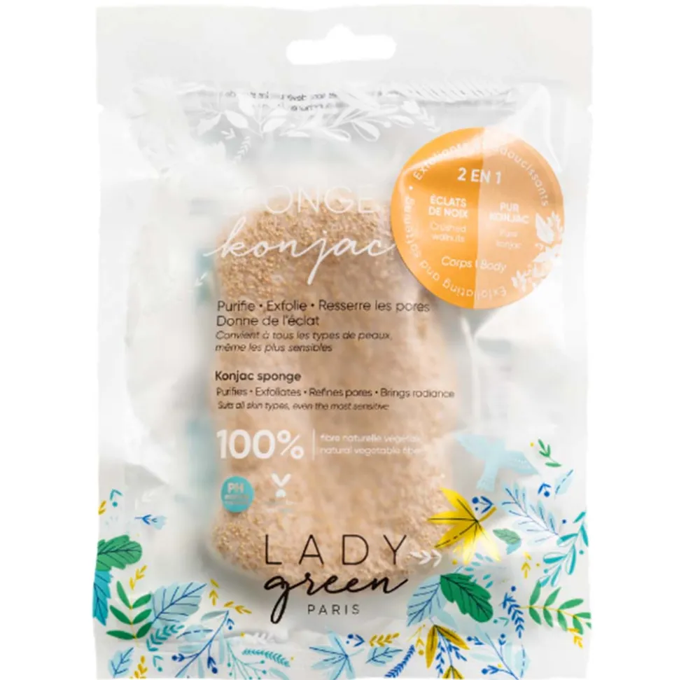 Der LADY green Konjac Schwamm für den Körper Crushed Wa bietet sowohl eine Körperreinigung als auch einen leichtes Körperspeeling durch feinste Nusskörner gegen abgestorbene Hautzellen. Ein unverzichtbarer Verbündeter im Badezimmer für eine sanfte Haut.