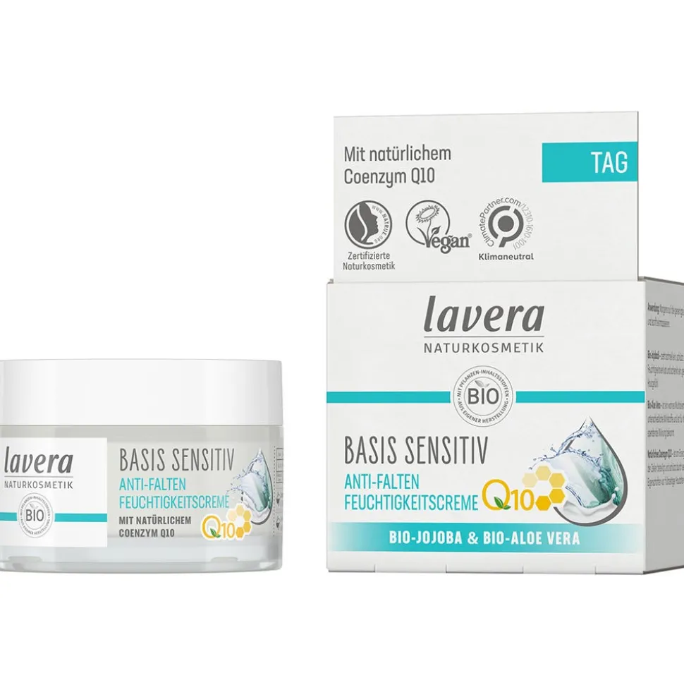 Die Lavera Basis Sensitiv Antifalten Feuchtigkeitscreme wirkt den Anzeichen von Hautalterung auf natürliche Weise entgegen. Die milde und gut verträgliche Formel mit natürlichem Coenzym Q10 bekämpft dank antioxidativer Eigenschaften frühzeitige Hautalterung und reduziert Fältchen und Falten nachweislich. Die schnell einziehende Textur verschmilzt sanft mit der Haut und schenkt ihr dabei langanhaltende Feuchtigkeit – für ein sichtbar glatteres, geschmeidiges Hautbild, den ganzen Tag.