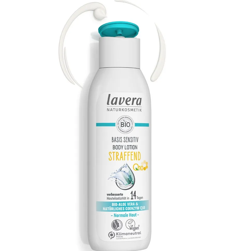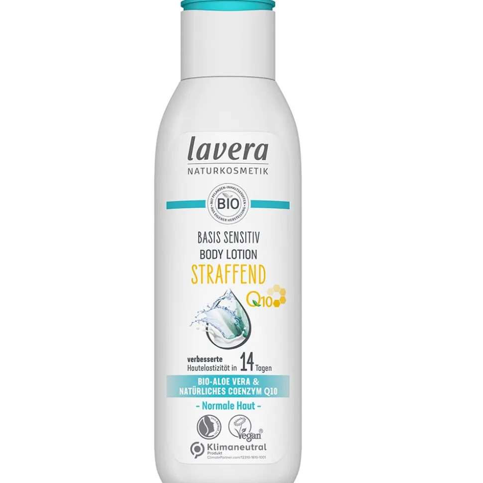 Die Lavera Basis Sensitiv Body Lotion Straffend mit Bio-Aloe Vera & natürlichem Coenzym Q10 verbessert die Hautelastizität schon nach 2 Wochen. Bio-Aloe Vera ist ein wahres Multitalent, enthält viele unterschiedliche Wirkstoffe und ist für ihre feuchtigkeitsspendende Wirkung bekannt. Natürliches Coenzym Q10 ist am Energiestoffwechsel der Zellen beteiligt und kann durch seine antioxidativen Eigenschaften vor frühzeitiger Hautalterung schützen.