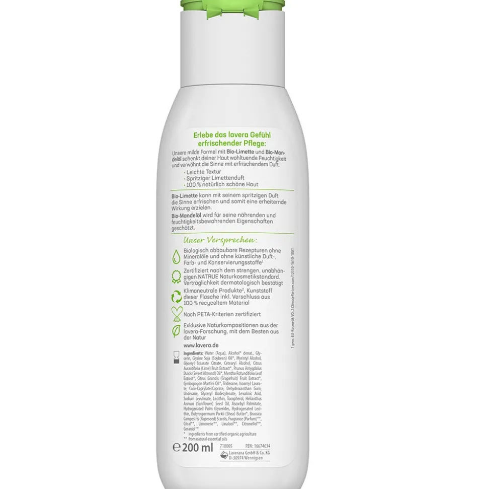 Die Lavera Bodylotion Erfrischend mit Bio-Limette & Bio-Mandelöl spendet Ihrer Haut wohltuende Feuchtigkeit und verwöhnt die Sinne mit erfrischendem Limettenduft. Bio-Limette kann mit seinem spritzigen Duft die Sinne erfrischen und somit eine erheiternde Wirkung erzielen. Bio-Mandelöl wird für seine nährenden und feuchtigkeitsbewahrenden Eigenschaften geschätzt.