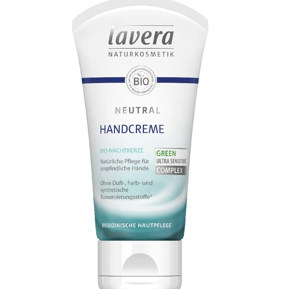Die Lavera Neutral Handcreme bietet natürliche Pflege für empfindliche Hände. Die Handcreme mit Bio-Nachtkerze und Bio-Sheabutter zieht schnell ein und pflegt irritierte Haut intensiv mit Feuchtigkeit. Die hochwirksame Rezeptur unterstützt die hauteigene Regeneration und beugt Austrocknung vor. Für Neurodermitiker geeignet.