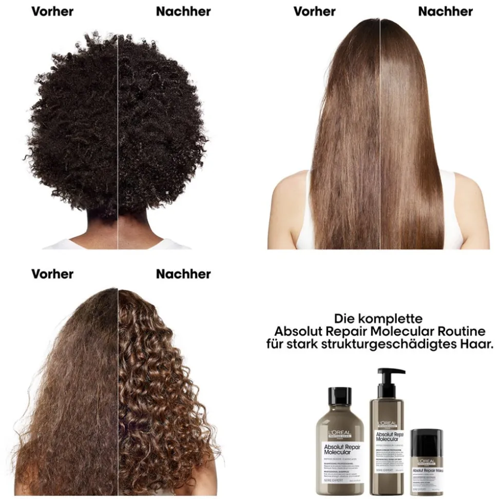 - Instrumenteller Test: nach 15 Anwendungen von Absolut Repair Molecular Shampoo + Rinse-Off Serum + Leave-In