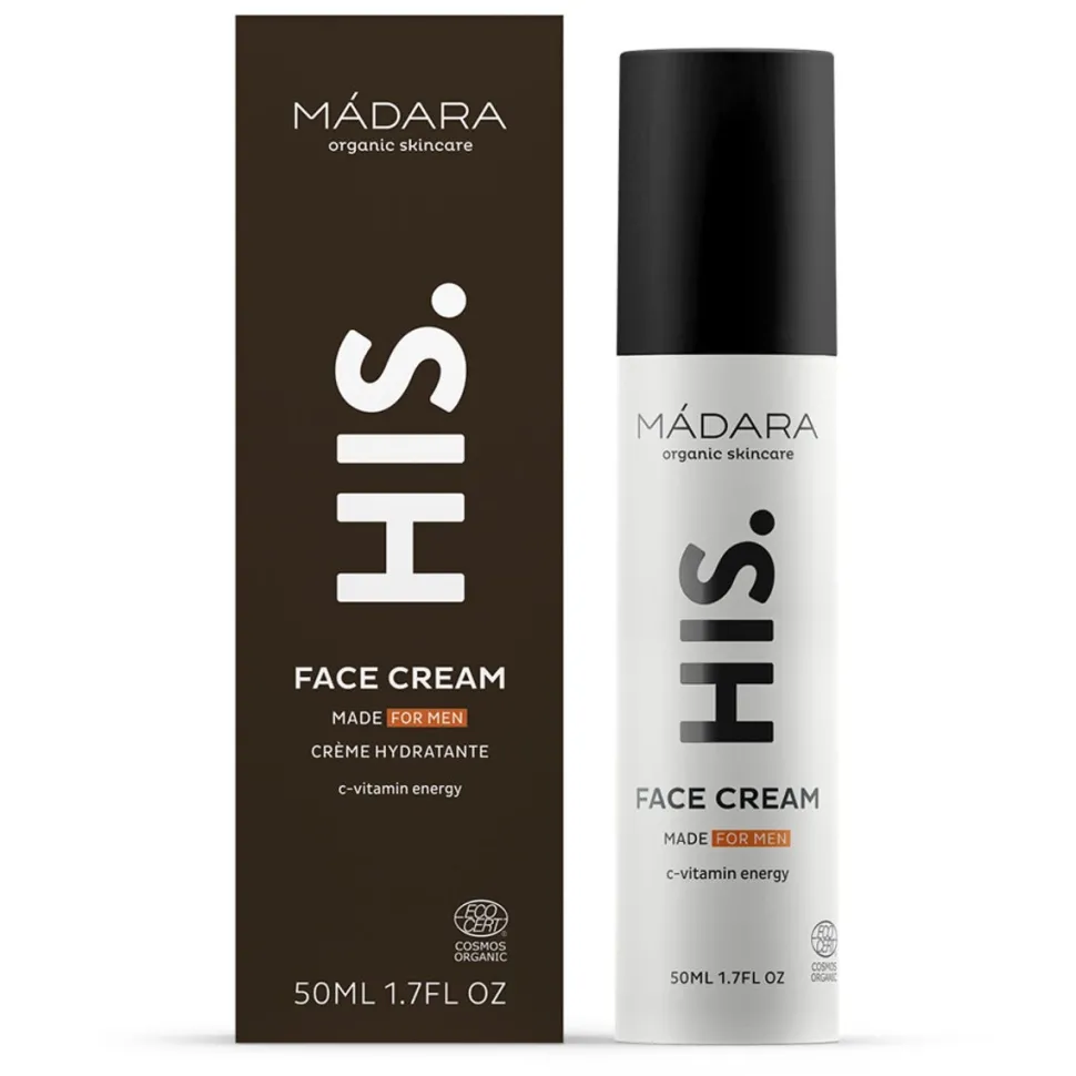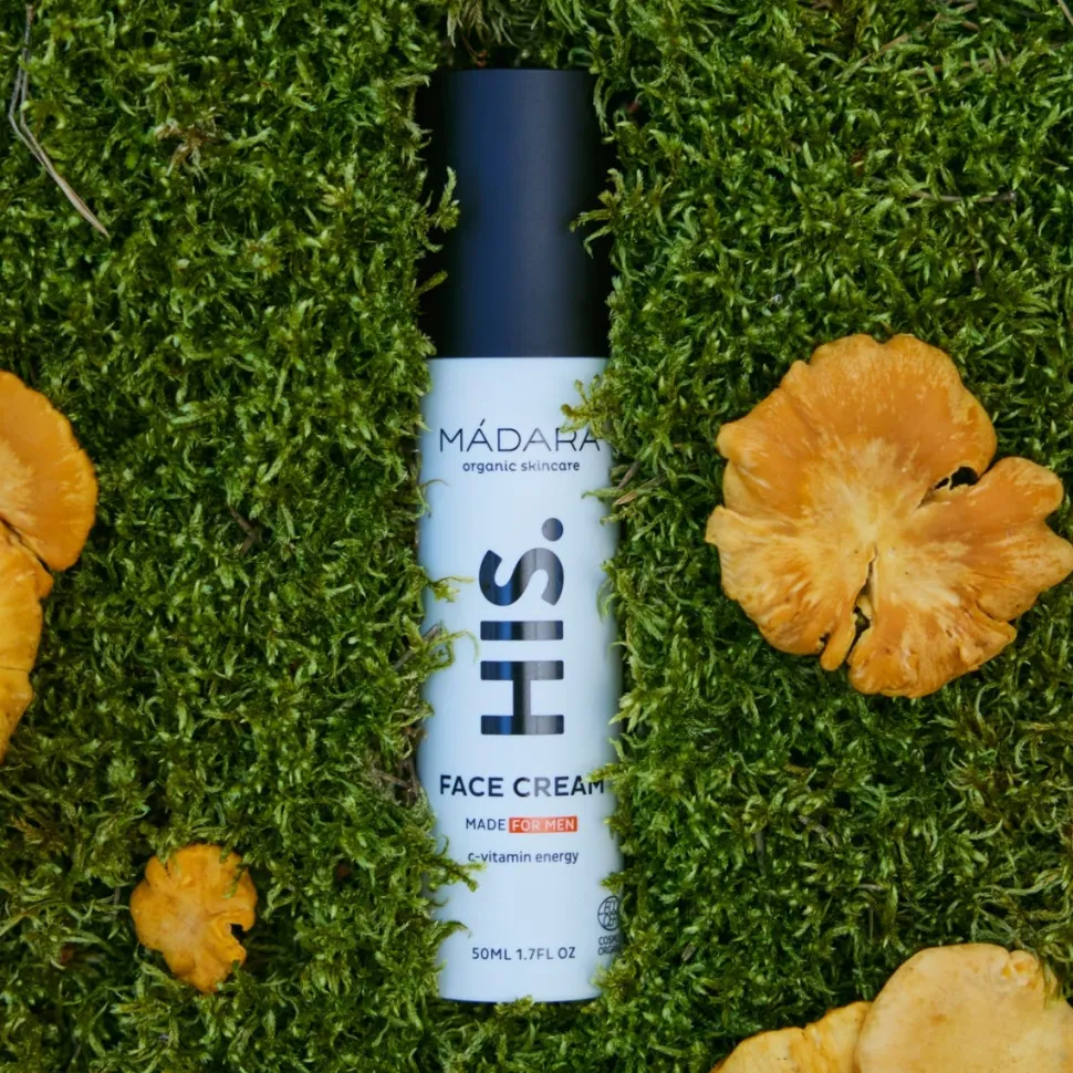 Die MÁDARA HIS Face Cream reduziert Trockenheit und verbessert das Hautbild. Für eine glatte, gesunde und gutaussehende Haut ist eine regelmäßige Pflege das A und O. Diese vielseitige, speziell für Männer entwickelte Feuchtigkeitscreme haben wir mit Vitamin C angereichert – für die tägliche Feuchtigkeitsversorgung ist sie dein bester Kumpel. Die als Biokosmetik zertifizierte Formulierung setzt auf hochwirksame nordische Inhaltsstoffe. Eichenrinde versorgt die Haut mit wichtigen Antioxidantien und verleiht ein frisches Aussehen, während der nordische Pfifferling das Erscheinungsbild von feinen Linien und Falten mildert.