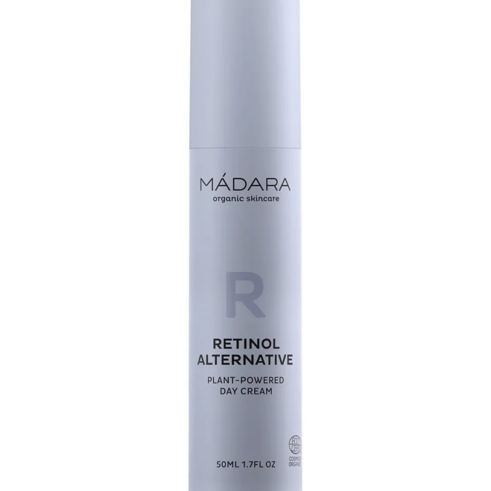 Die MÁDARA Retinol Alternative Plant-Powered Day Creme zieht sofort in die Haut ein, spendet intensiv Feuchtigkeit und sorgt für ein angenehmes Gefühl. Bei dieser hochwirksamen Feuchtigkeitscreme für den Tag handelt es sich um ein fortschrittliches Hautpflege-Produkt. Sie enthält einen alternativen, pflanzlichen Retinol-Komplex, der ebenso wirksam ist wie traditionelles Retinol. Die Creme enthält Birkenwasser mit vielen Antioxidantien, das die Zellerneuerung der Haut beschleunigt, sowie Bidens Pilosa Extrakt (Zweizahn), der die Retinoid-Rezeptoren der Haut aktiviert. Die milde, jedoch hochwirksame Formulierung glättet die Hautstruktur, feine Linien und Falten und geht gegen alle Anzeichen einer frühzeitigen Hautalterung vor. 80% der BenutzerInnen stellten nach acht Wochen ein glatteres und strahlenderes Hautbild fest.