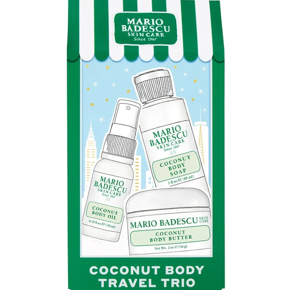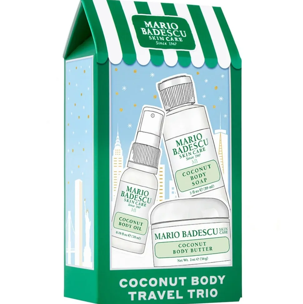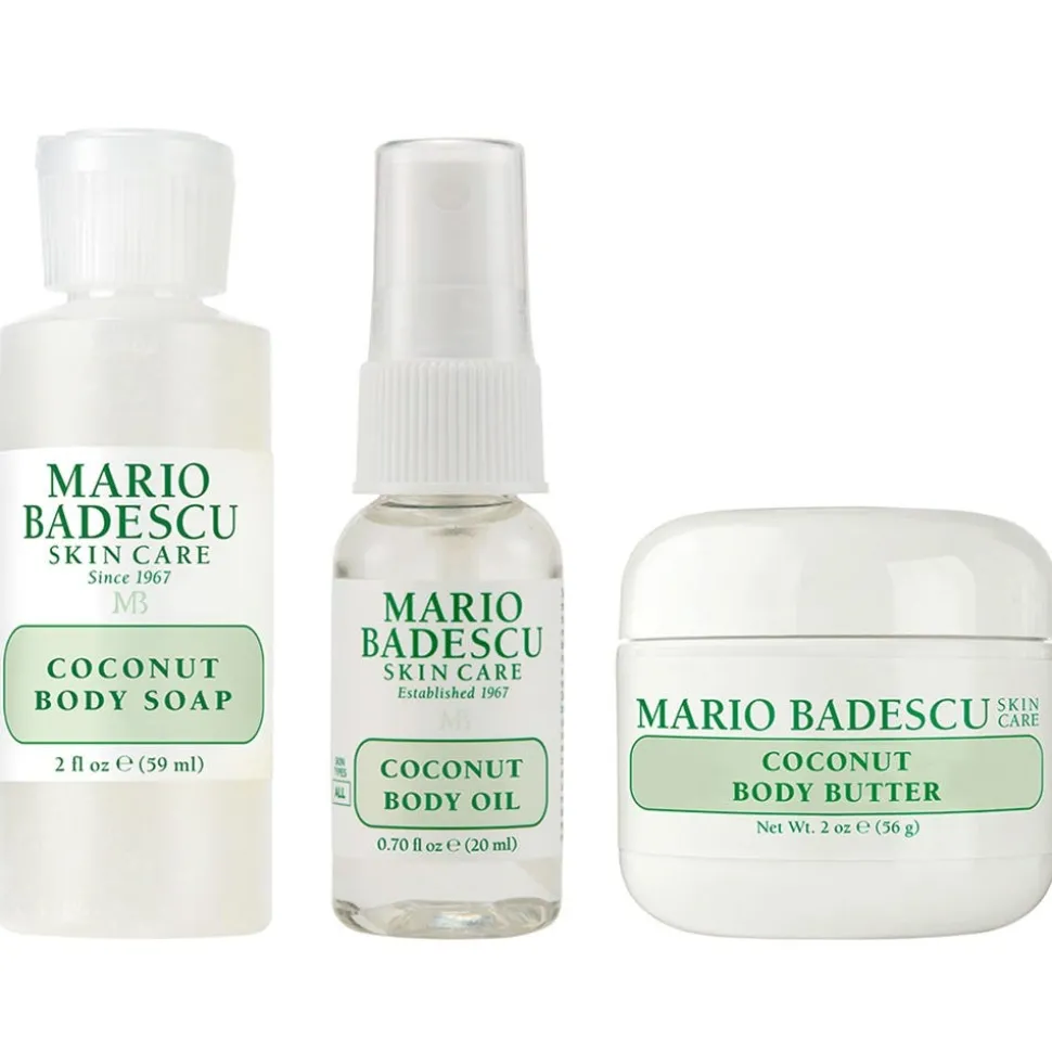 Das Mario Badescu Coconut Body Travel Trio mit drei Pflegeprodukten für ein gesundes Strahlen von Kopf bis Fuß. Das Set enthält die 1x Mario Badescu Coconut Body Soap 59 ml, 1x Mario Badescu Coconut Body Oil 20 ml und 1x Mario Badescu Coconut Body Butter 56 g.