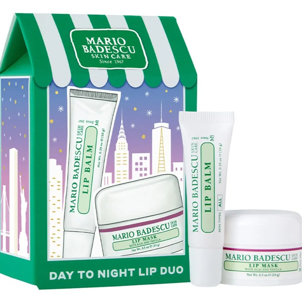 Das Mario Badescu Day to Night Duo mit einer Lippenmaske und einem Lippenbalsam für spürbar weiche Lippen. Das Geschenkset enthält 1x Mario Badescu Lip Balm 10 g und 1x Mario Badescu Lip Mask with Acai & Vanilla 14 g.