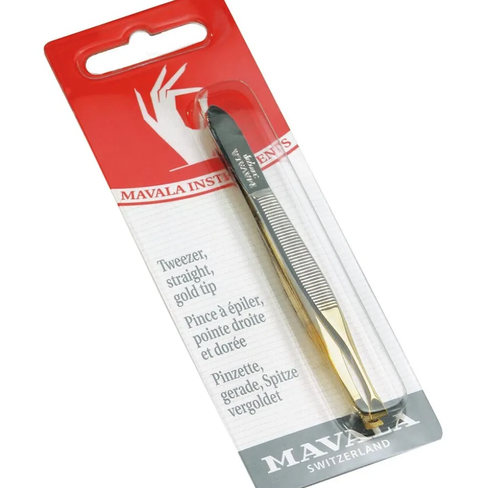 Die Mavala Pinzette gerade aus gehärtetem, warm geschmiedetem Stahl mit vergoldeter Spitze.