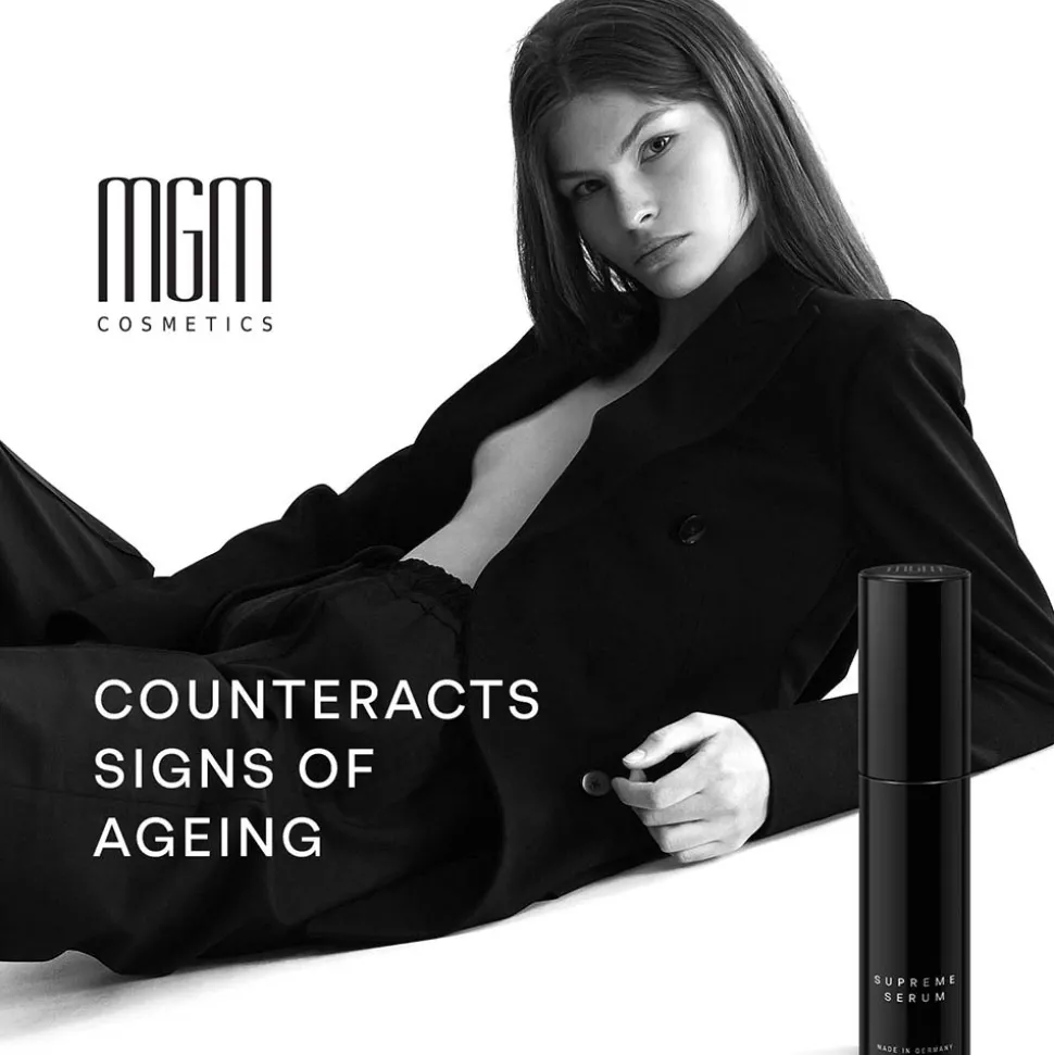 MGM Cosmetics – a brand by MGM Models steht für nachweislich wirksame luxuriöse Hautpflege, die durch innovation hervorsticht. Ursprünglich für Europas größte Modelagentur und die Anwendung am Set von Models entwickelt, bietet MGM Cosmetics ein breites Produktportfolio für jedes Hautbedürfnis an. Drei hochwirksame Pflegeserien – Everyday, Advanced und Supreme, abgestimmt auf die verschiedenen Hauttypen und Altersklassen, geben Ihrer Haut genau das, was sie braucht. Das Besondere? Ein Soforteffekt mit langfristiger Wirkung.
