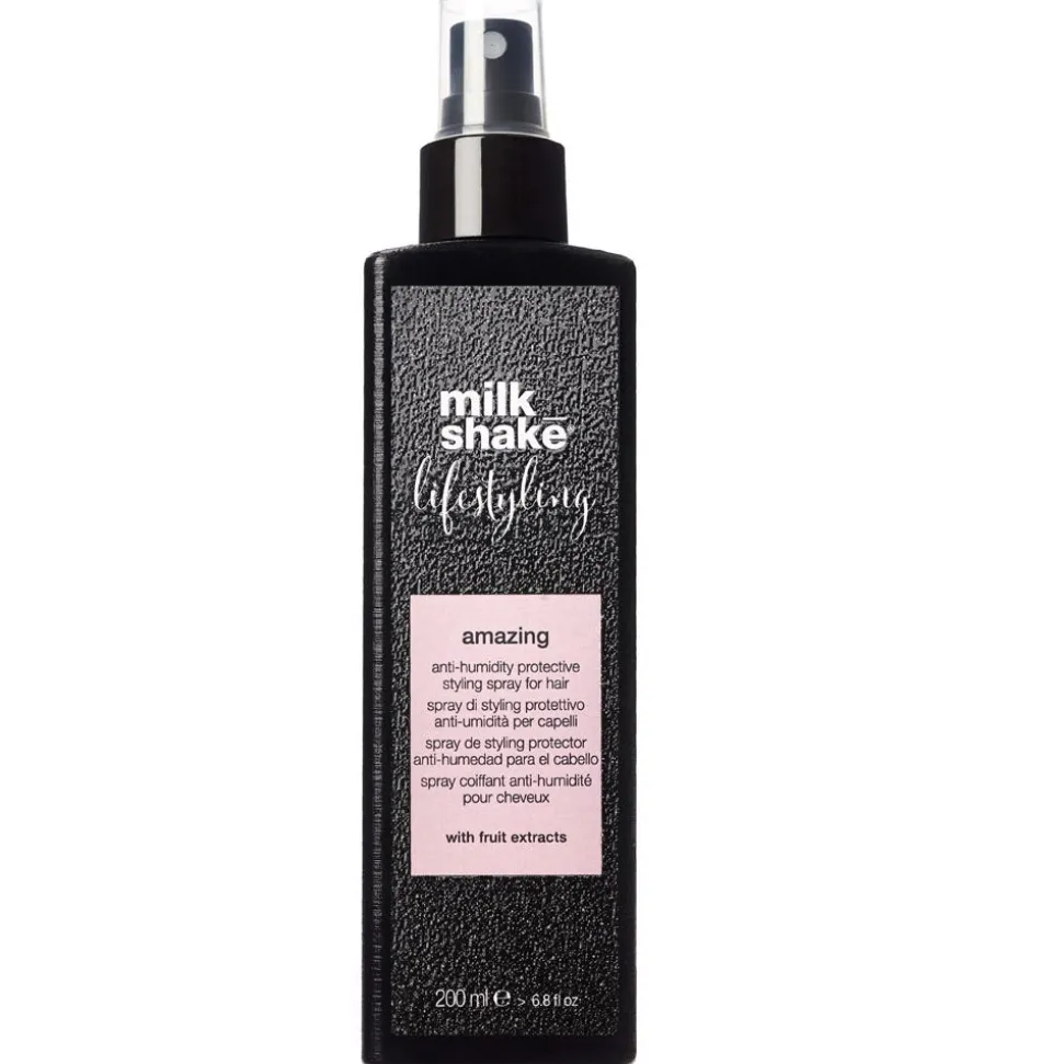 Das milk_shake Lifestyling Amazing ist ein innovatives Produkt mit hochmodernen Polymeren, die aktiviert und so strukturiert sind, dass sie hitzebeständiger sind und einen wasserdichten Film bilden, der das Haar vollständig bedeckt und die Haarkutikula versiegelt. Diese Schutzschicht verhindert, dass Feuchtigkeit in die Haarfaser eindringt, während sie gleichzeitig das Haar vor thermischem Stress schützt und das Ausbleichen der Farbe verhindert, so dass die Haarfarbe frisch und strahlend bleibt. Darüber hinaus reduziert es die Fönzeit und erhöht die Handhabbarkeit des Haares. Dieser sehr feine Film beschwert das Haar nicht, und das Haar wirkt gesünder und rückstandsfrei gepflegt für ein einfach atemberaubendes Ergebnis.