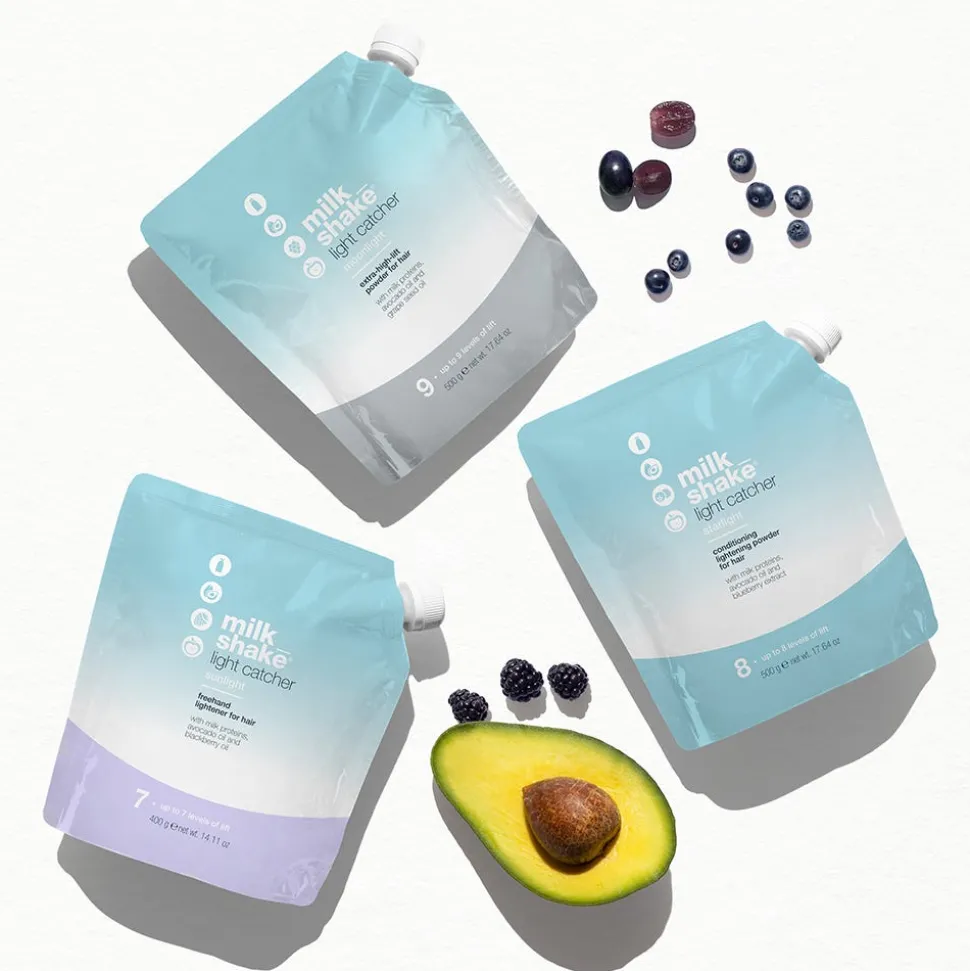 Das milk_shake Light Catcher Starlight Level 8 ist eine Aufhellungsformel, die für alle Aufhellungstechniken mit Folien geeignet ist. Die geschmeidige, elastische Mischung macht das Auftragen leicht und haftet perfekt während der Verarbeitung am Haar. Die nicht flüchtige Formel bewahrt die Feuchtigkeit während der Anwendung. Tropffreie, nicht quellende Formel. Milchproteine gemischt mit Avocadoöl garantieren Schutz und Pflege für das Haar. Angereichert mit Heidelbeer-Extrakt mit einer nährenden Wirkung. Nur für den professionellen Gebrauch.