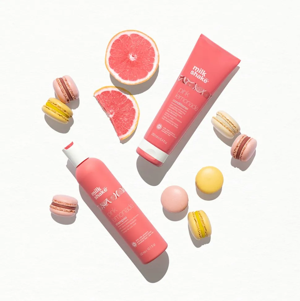 Die pink lemonade Produkte färben blondes Haar mit hübschen Rosatönen, die nur wenige Wäschen halten, so dass Sie sich an einen ultra-rosa Glamour wagen können, ohne sich darauf festzulegen. milk_shake pink lemonade pflegt zusätzlich! Die einzigartigen Pink Lemonade-Formeln enthalten Milchproteine und Grapefruit-Extrakt, zwei außergewöhnliche Inhaltsstoffe aus der Natur, die eine Tiefenwirkung auf das Haar haben und einen rosa Farbton verleihen, ohne die Qualität und Vitalität des Haares zu beeinträchtigen.