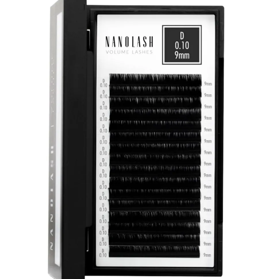 Die Nanolash Volume Lashes 0.10 D 9mm zur Wimpernverlängerung im Stil „Silk Lashes“ sind zur Anwendung in Kosmetikstudios bestimmt. Sie wurden aus einem hochwertigen, synthetischen Stoff hergestellt, wodurch sie Erwartungen der besonders anspruchsvollen Kundinnen und Wimpernstylistinnen erfüllen. Sie zeichnen sich durch eine überdurchschnittliche Qualität aus, weil sie dicht gewebt und handgemacht sind. Die künstlichen Wimpern sind nicht nur besonders weich und elastisch, sondern auch den menschlichen Naturwimpern täuschend ähnlich. Sie ermöglichen beeindruckende Effekte dank der haltbaren Biegung, tiefen Farbe und großen Auswahl der Wimpernvarianten. Die Wimpernextensions kommen in fünf Dicken und acht Längen vor. Zur Auswahl stehen außerdem zwei Biegungstypen. Diesbezülich ist es möglich, die Kunstwimpern an die individuellen Bedürfnisse problemlos anzupassen. Die Wimpernextensions Nanolash Volume Lashes bewähren sich sowohl bei Volumentechniken als auch bei der klassischen Wimpernverlängerung. Die Struktur der Härchen ermöglicht die Bildung der Wimpernbüschel mit der Shifting- oder Scratch-Methode.