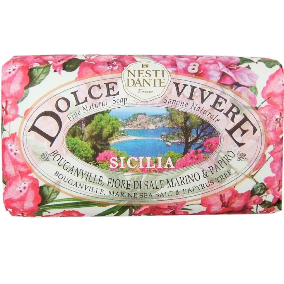 Der sonnige Duft der Bougainvillea, davongetragen von einer salzigen Meeresbrise, bereichert vom berauschenden Parfum des seltenen Papyrus-Baumes. Diese besondere Nesti Dante Dolce Vivere Silicia Seife bringt den Duft Siziliens zu Ihnen nach Hause. Die Linie Dolce Vivere ist eine Hommage an die italienische Schönheit und den Lebensstil. Jede Seife soll das Gefühl vermitteln, an einem ihrer schönsten Plätze zu sein, indem sie nostalgische und romantische Situationen und Erfahrungen hervorrufen, die die Sinne anregen.