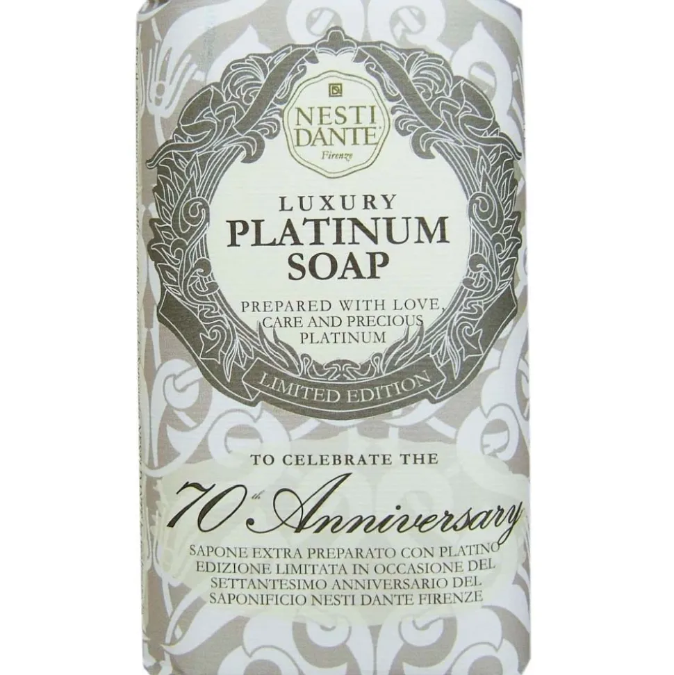 Anlässlich 70 Jahre Nesti Dante Firenze wurde diese Nesti Dante Luxury Platin mit viel Liebe, Sorgfalt und kostbarem Platin hergestellt. Platin ist eines der wertvollsten Edelmetalle und wird auch in der Ayuveda Medizin verwendet. Als natürliches Antioxidant glättet und festigt es die Haut und hält sie gesund. Neben dem verarbeitetem Platin wird aus der Seife auch durch den intensiven Duft nach edler Camelia und weissem Jasmin etwas ganz Besonderes.