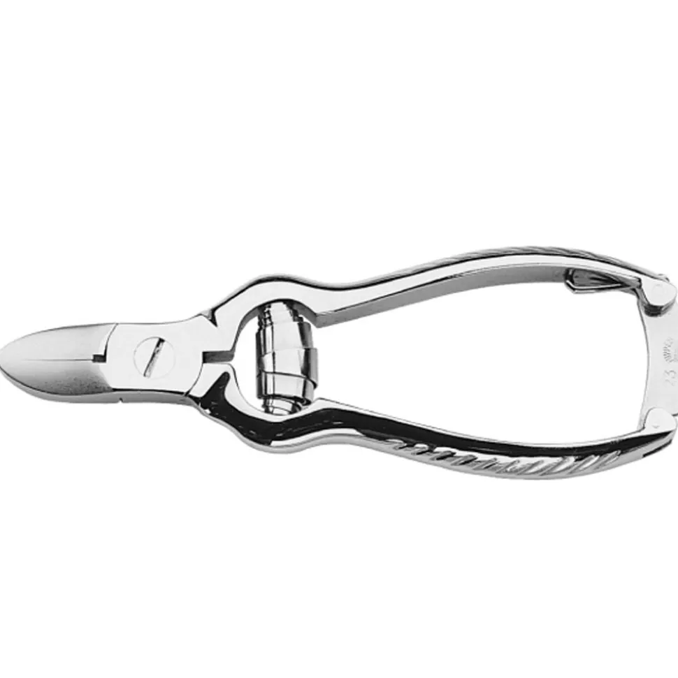 Die Nippes Nagelzange aus Edelstahl kommt mit Pufferfeder und erleichtert das Kürzen von festen und harten Nägeln. Die Größe von 120 mm und das höhere Gewicht ermöglichen unkompliziertes Arbeiten und optimale Ergebnisse. Natürlich Premium Qualität, made in Solingen aus Edelstahl rostfrei.