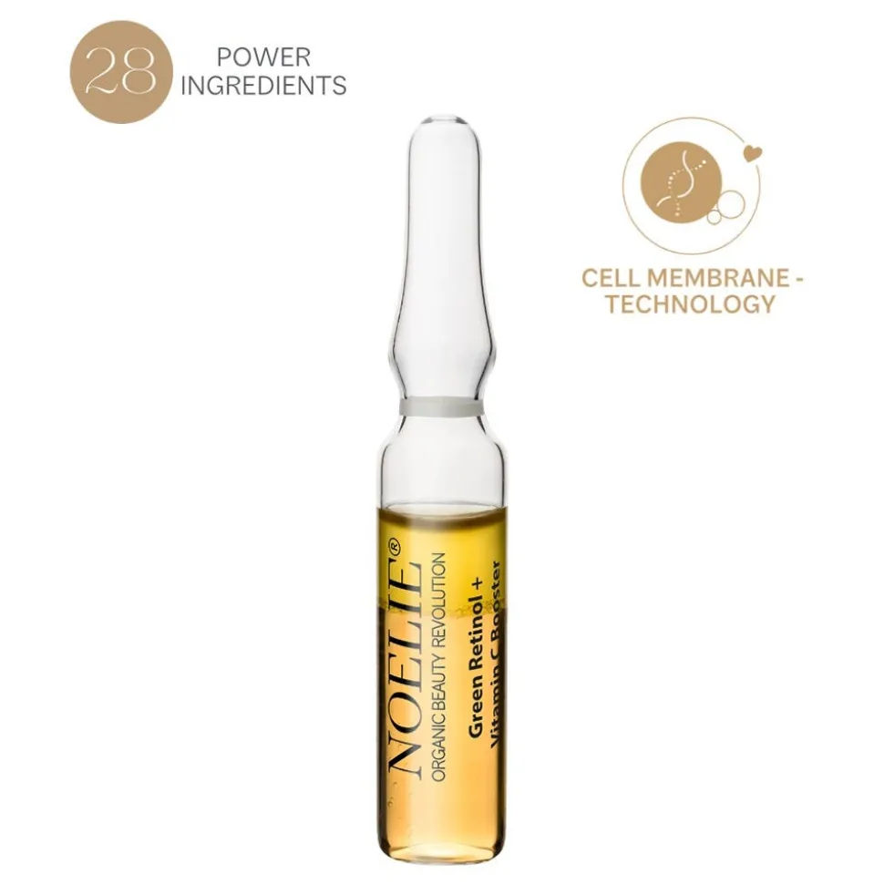 Die NOELIE Green Retinol + Vitamin C Booster ist eine Ampullen-Kur für eine 3,5-fach festere Haut und den perfekten Glass Skin-Effekt in der Prämenopause, Menopause und Postmenopause. Entdecke straffere Haut und einen strahlenden Glass-Skin-Effekt mit unserem Green Retinol + Vitamin C Booster. Unsere patentierte Cell Membrane-Technology mit CELL BOOST-EFFECT vereint 28 hochwirksame Inhaltsstoffe und studiengeprüfte Power-Wirkstoffe aus natürlichen Quellen, um Deine Haut in der Prämenopause, Menopause und Postmenopause optimal zu pflegen.