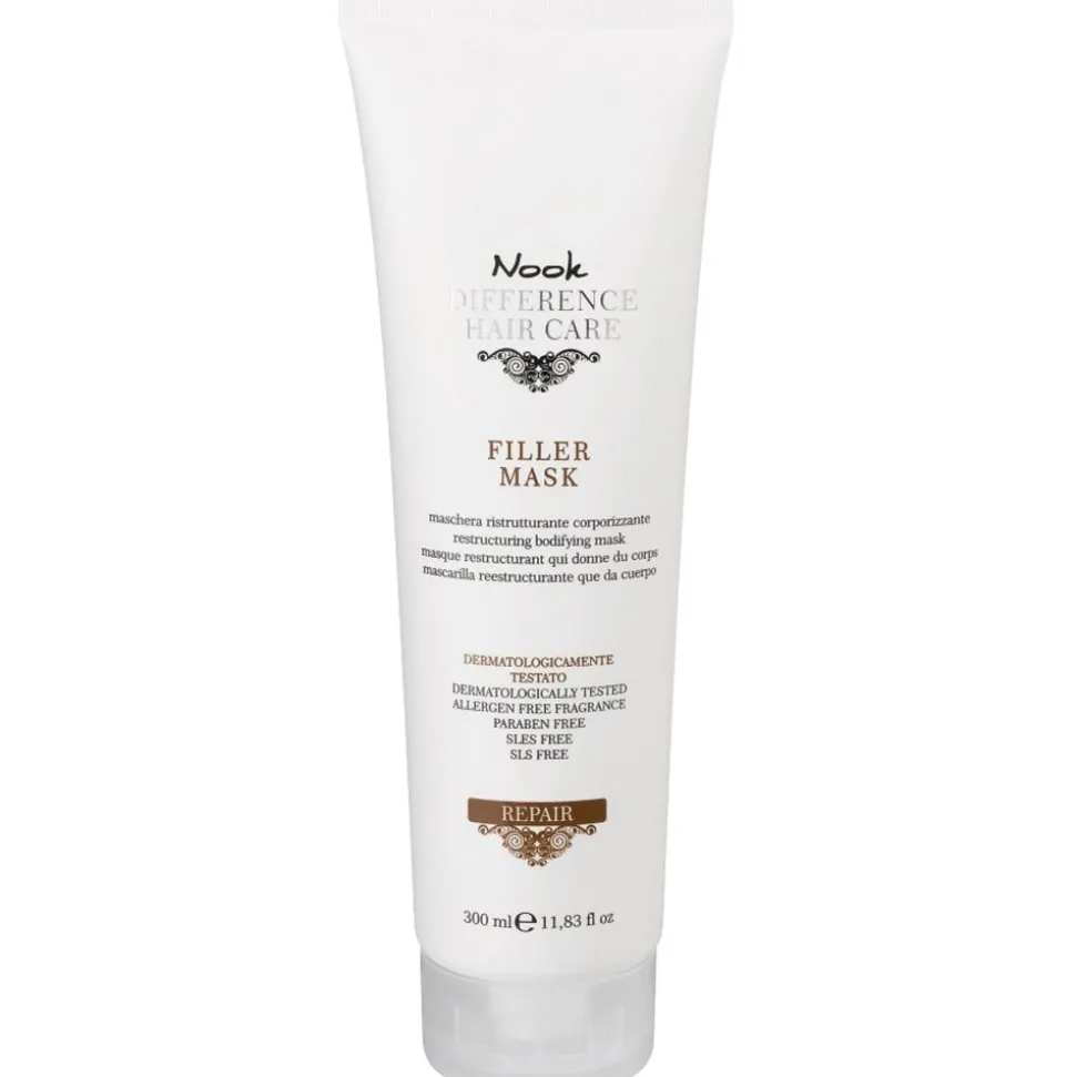 Die Nook Filler Mask ist eine restrukturierende, volumenspendende Pflegemaske. Spezifische Pflegemaske für feines, gestresstes und zerfasertes Haar. Wirkt freien Radikalen und der Austrocknung der Kopfhaut entgegen und verbessert dadurch die Struktur des Haarschaftes. Schenkt Volumen,Fülle, Glanz, Geschmeidigkeit ohne zu beschweren. Bei regelmäßigem Gebrauch spendet die Haarkur einen Anti-Krause-Effekt.