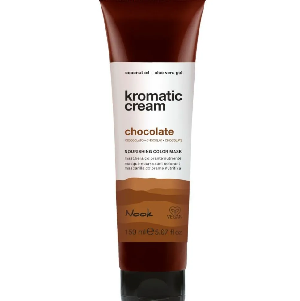 Die Nook Kromatic Cream Chocolate ist eine nährende Haarmaske mit Direktpigmenten und saurem pH- Wert, die dem Haar eine temporäre, individuell anpassbare Farbaauffrischung verleiht- ganz ohne Silikone oder aggressive Inhaltsstoffe. Die Nuance Chocolate sorgt dabei für braune Tonhöhen mit Dreidimensionalität und Gleichmäßigkeit.