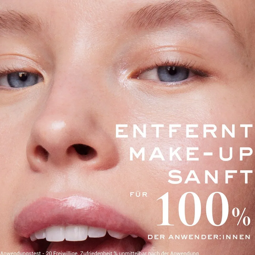 - 95 % der Freiwilligen finden, dass die Haut sanft gereinigt und dass selbst hartnäckiges Make-up entfernt wird.