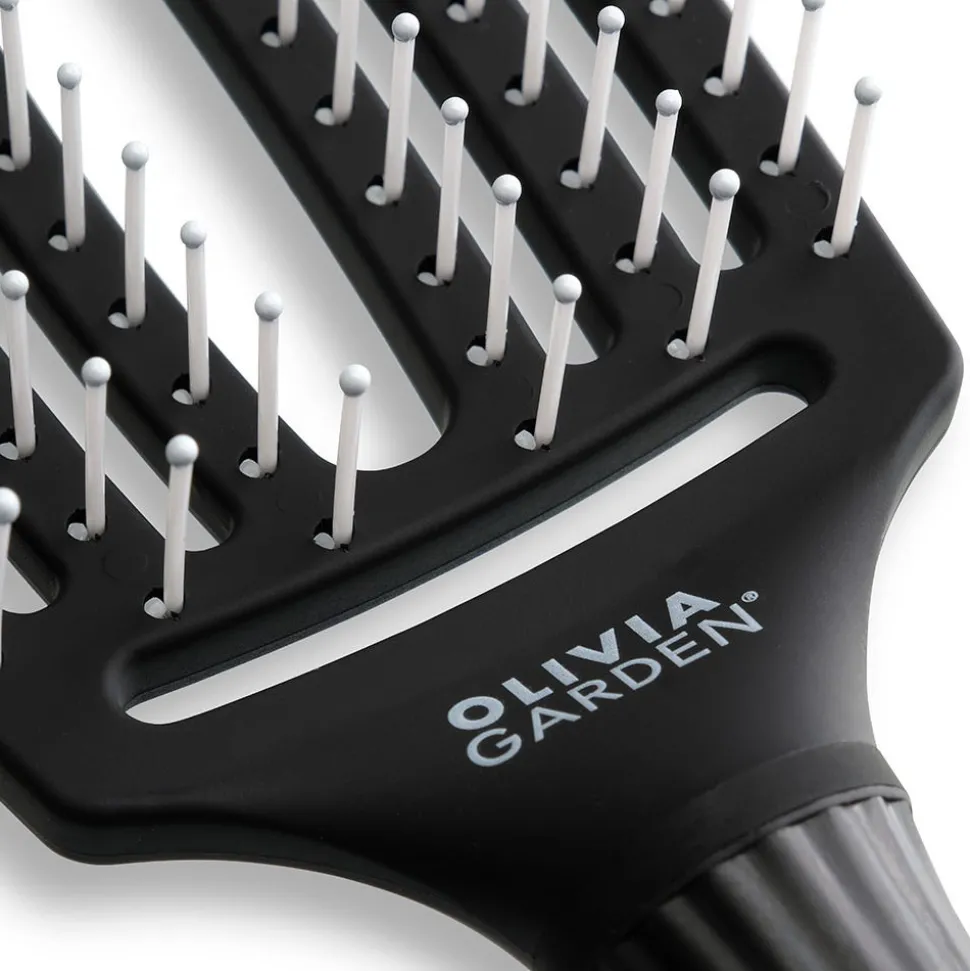 Die abgerundeten Nylonborsten der Olivia Garden Fingerbrush M mit Noppen schonen die Kopfhaut, entwirren das Haar sanft bei der täglichen Pflege und massieren angenehm die Kopfhaut. Entwirrt trockenes und feuchtes Haar, ohne zu ziepen.