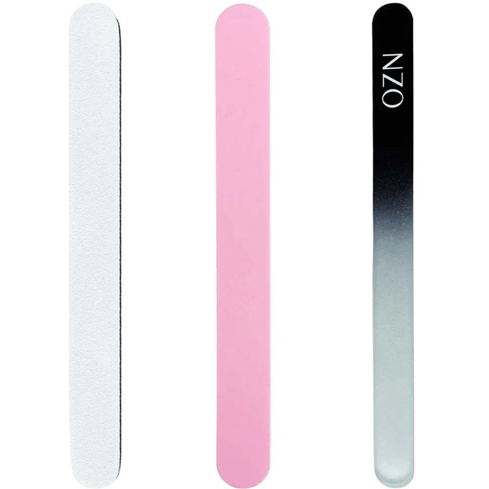 Das OZN Funny Feilenset besteht aus drei Nagelfeilen: Eine Profifeile mit zwei Seiten zum Kürzen und Formen der Nägel. Eine Glasfeile zum Versiegeln der Nägel. Eine Polierfeile mit zwei Seiten zum Glätten und Polieren der Nägel.