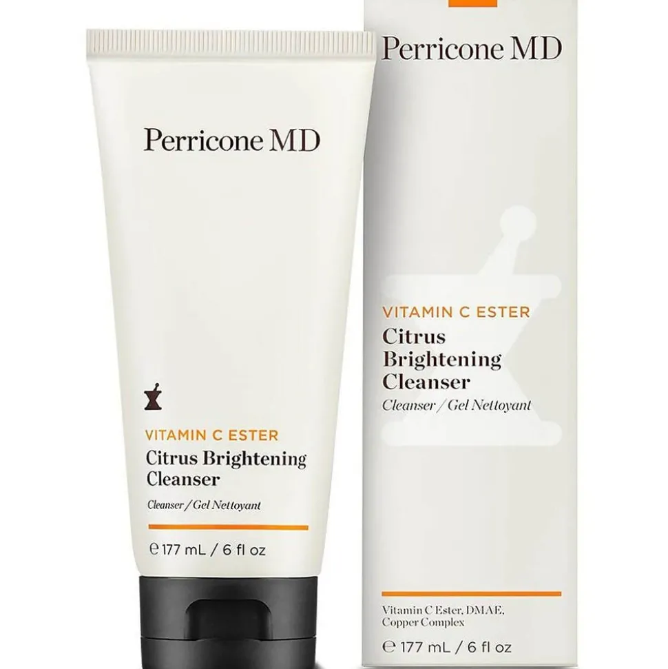 Perricone MD Vitamin C Ester Citrus Brightening Cleanser – Verbessere deine Reinigungsroutine mit unserem besten aufhellenden Waschgel – geeignet für fettige ebenso wie für normale Haut. Unser Citrus Brightening Cleanser ist eine nicht austrocknende Formel, die deine Haut reinigt, ohne ihr die natürlichen Öle zu entziehen. Dieser frische Vitamin-C-Reiniger ist mit unserem patentierten Vitamin-C-Ester formuliert – einer wirksameren und weniger reizenden Form von Vitamin C –, um deine Haut sichtbar zu glätten und aufzuhellen. Zudem enthält er DMAE für ein sichtbares Lifting und einen Kupferkomplex, der deine Haut mit Feuchtigkeit und Energie versorgt.
