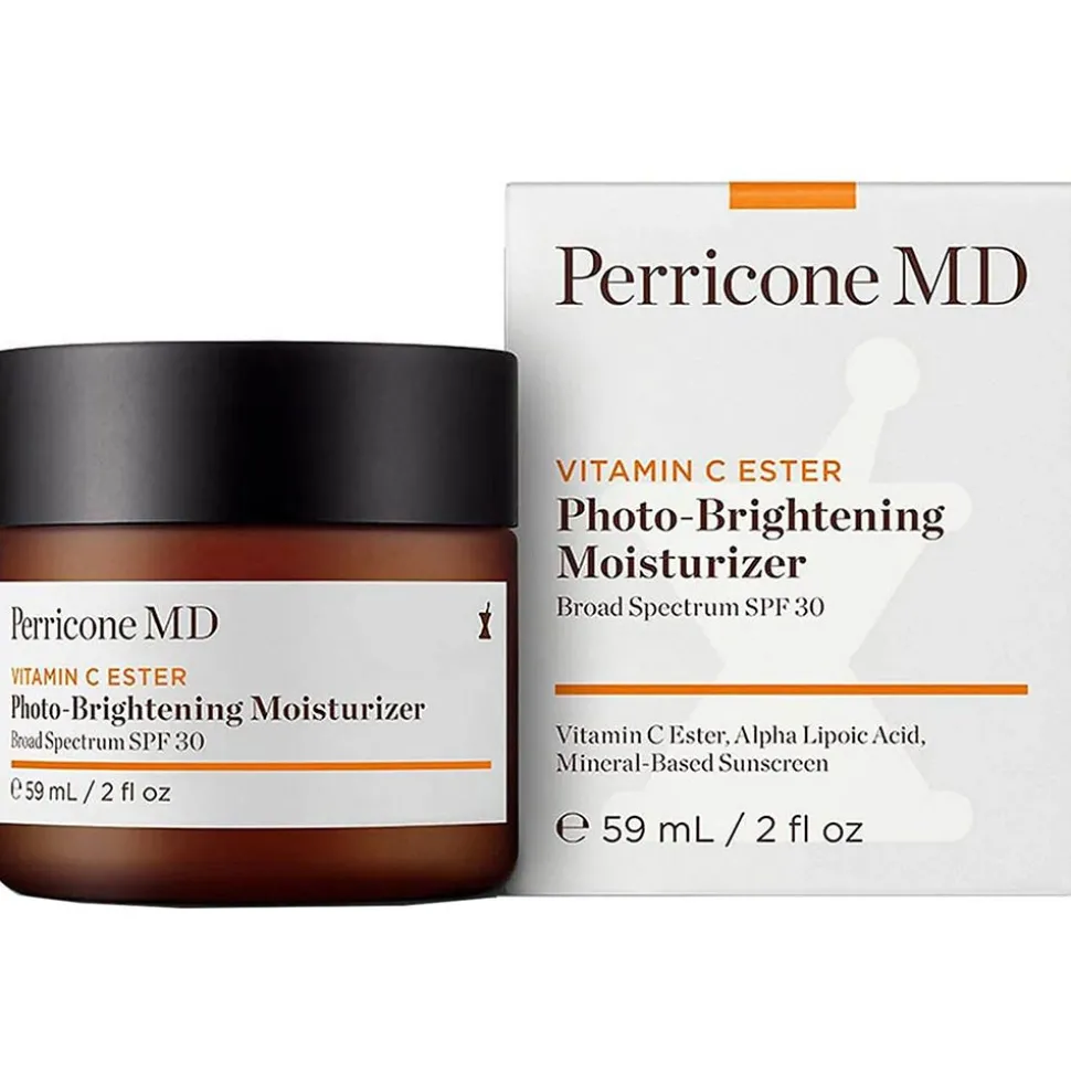 Der schnell einziehende, ölfreie Perricone MD Vitamin C Ester Photo-Brightening mit Lichtschutzfaktor bietet leistungsstarke antioxidative Vorteile, die helfen, das Auftreten von Falten und kleinen Makeln der Haut zu minimieren. Unsere hautaufhellende Feuchtigkeitscreme ist mit Vitamin-C-Ester formuliert, um das Erscheinungsbild einer kollagenreichen Haut zu vermitteln, indem sie die Verfärbungen im Laufe der Zeit sichtbar aufhellt und reduziert. Mithilfe von Alpha-Liponsäure reduziert diese noch leistungsstärkere Anti-Aging-Gesichtscreme das Auftreten von feinen Linien und Falten. Sicher dir die Vorteile einer effizienten Gesichtspflege mit Lichtschutzfaktor zum Schutz vor schädlichen UVA- und UVB-Strahlen.